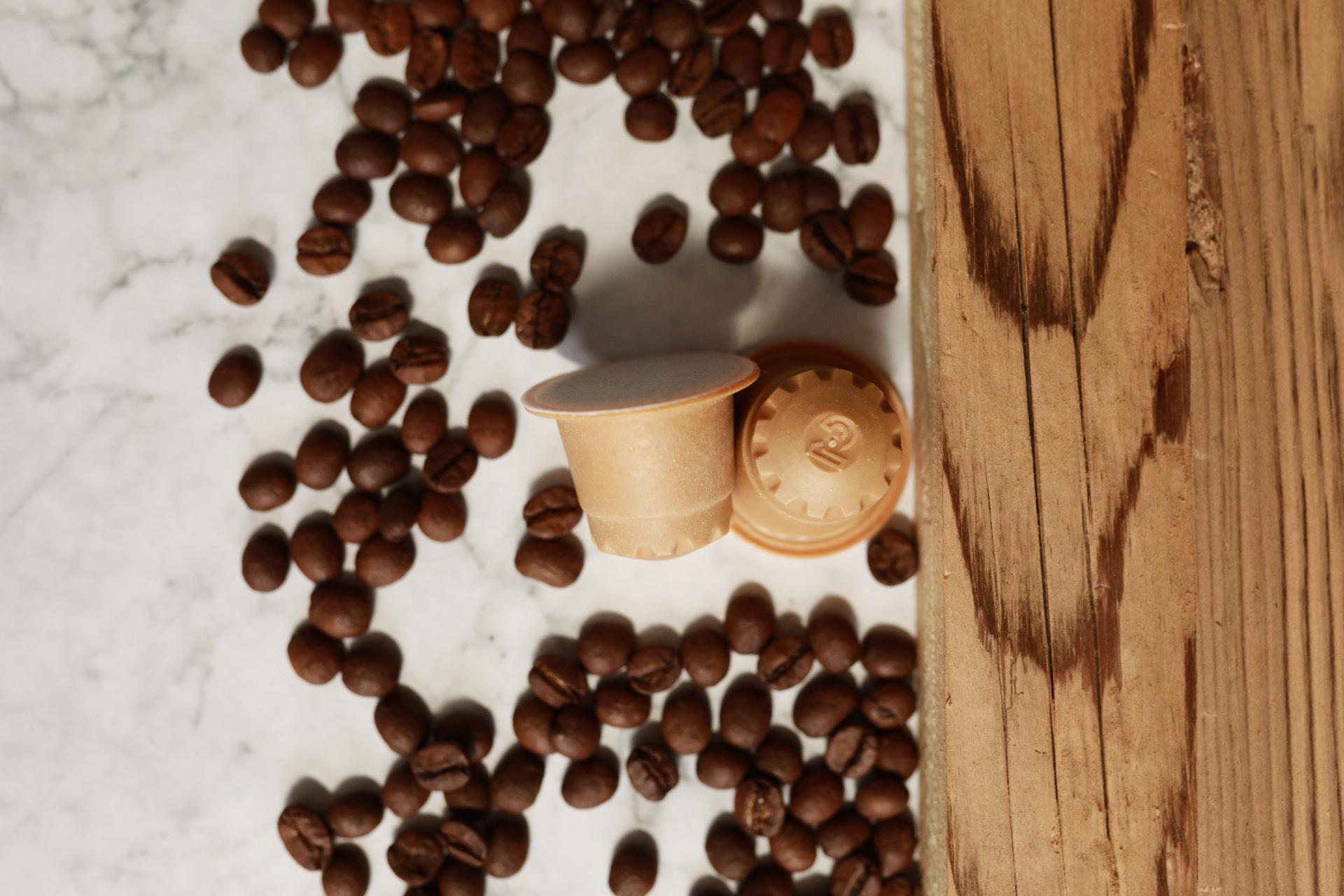 unsere Kaffeekapseln in Holzkapseln befüllt, sind zu 100% abbaubar.